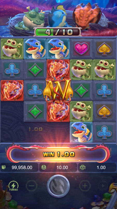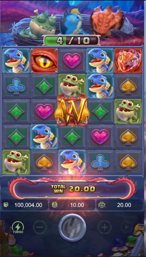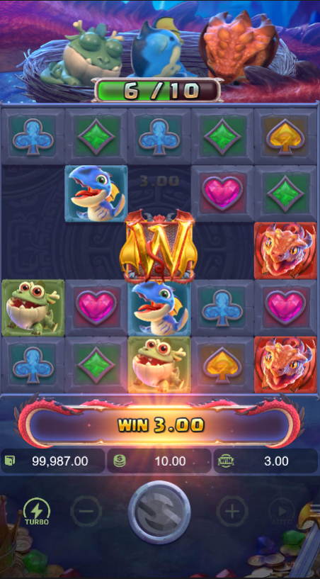 Dragon Hatch 3 is built around a cluster-based gameplay structure rather than traditional paylines. Instead of matching symbols across fixed lines, wins occur when groups of identical symbols form connected clusters on the grid.