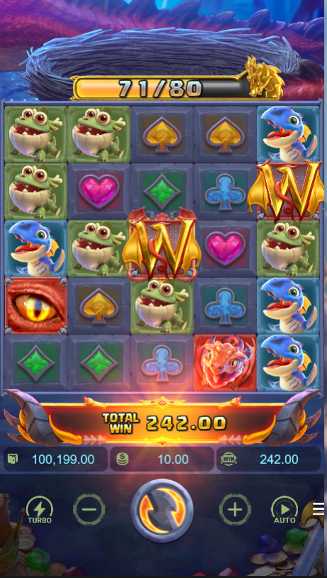 The visual design of Dragon Hatch 3 revolves around mystical dragon imagery and glowing gemstones. Every symbol on the board plays a specific role in shaping cluster formation and cascade potential.